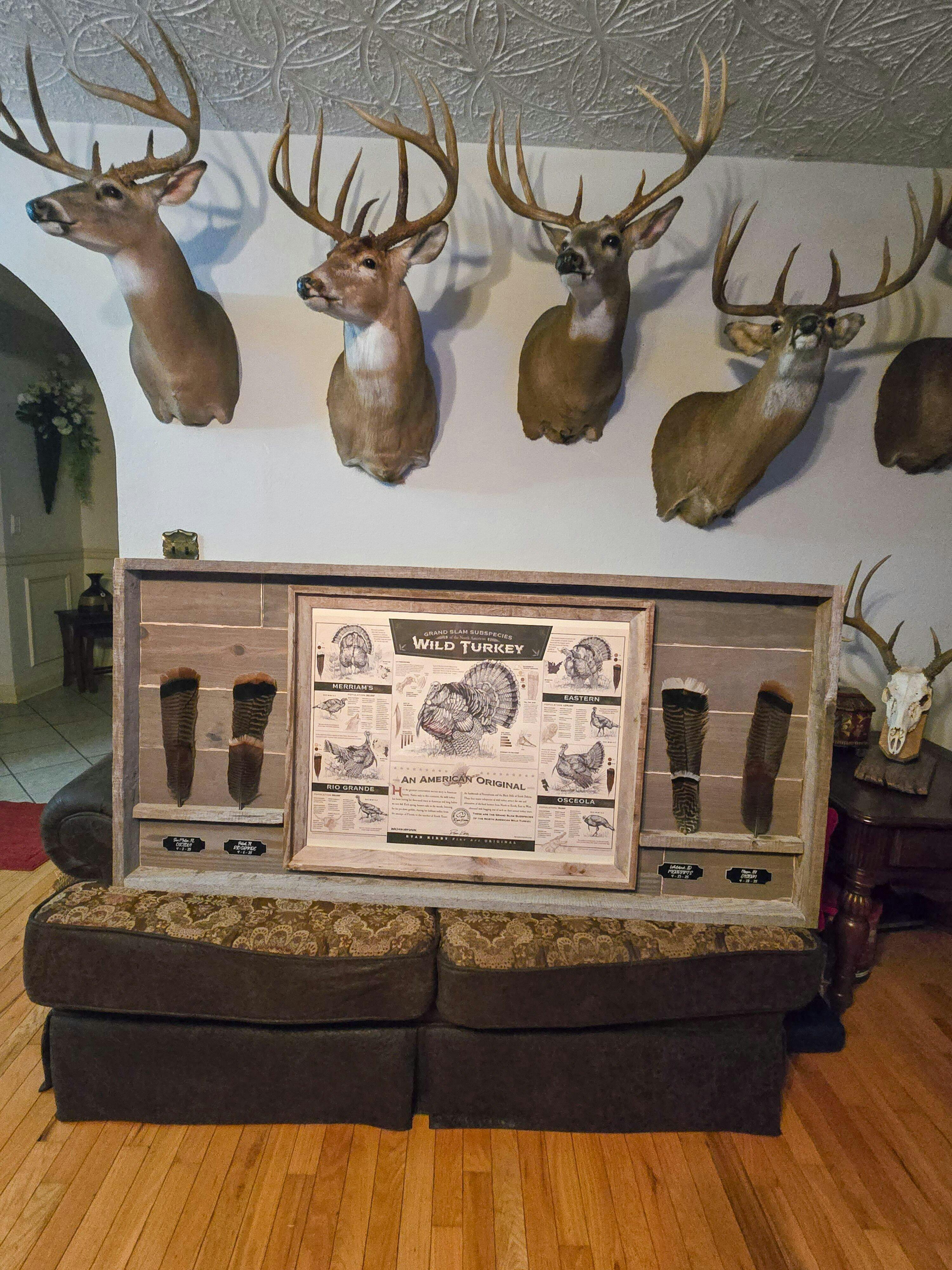 The “Grand Slam Subspecies of the North American Wild Turkey” by Ryan Kirby celebrates a true American original - the wild turkey. Essential for any turkey hunting enthusiast, this print is perfect for the office, hunting lodge, or mancave.