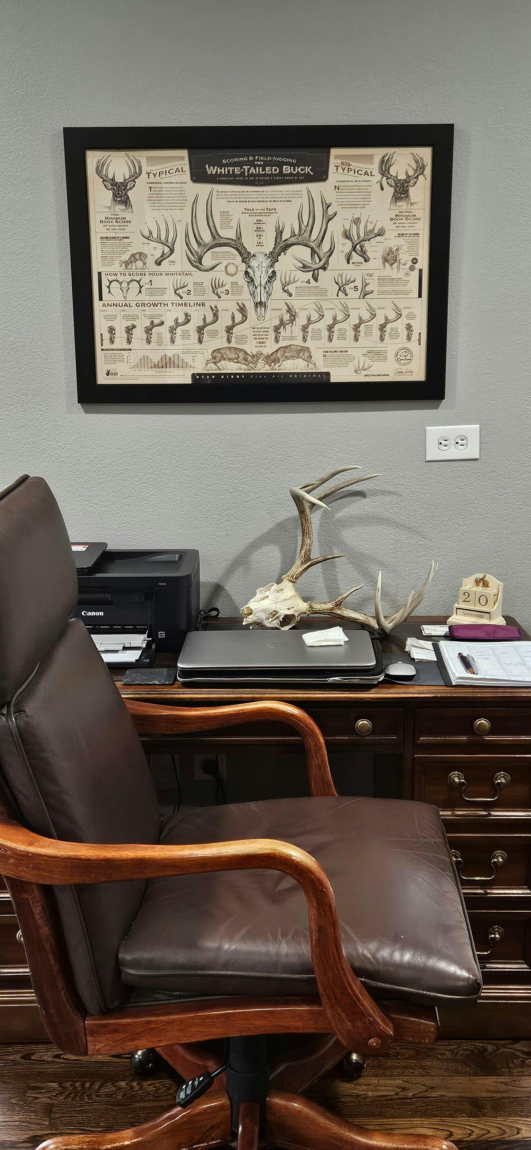 Each bundle comes with one of Ryan’s custom whitetail scoring sheets, featuring illustrated steps to score your buck. This special bundle price is 20% off the paper print and approximately 15% off framing.